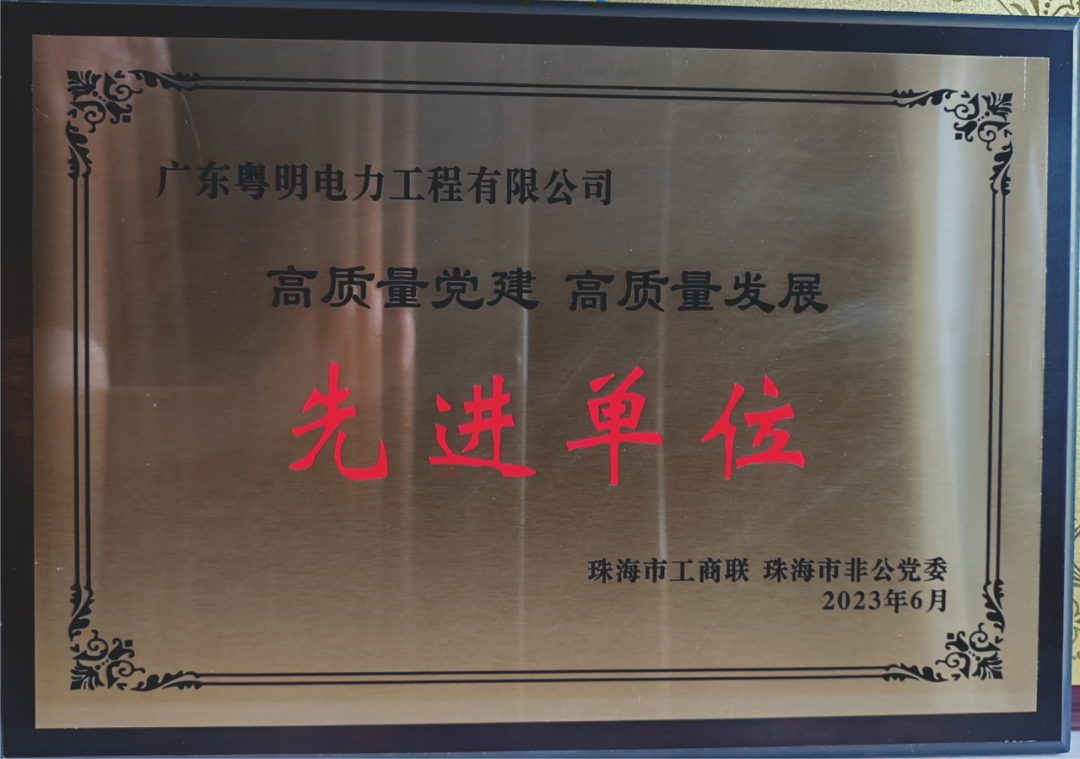 当前,珠海市非公党委正深入开展高质量党建引领企业高质量发展“双高”活动,经研究决定,评选出30家非公企业“高质量党建、高质量发展先进单位,粤明电力有幸被授予了【高质量党建、高质量发展先进单位】称号。