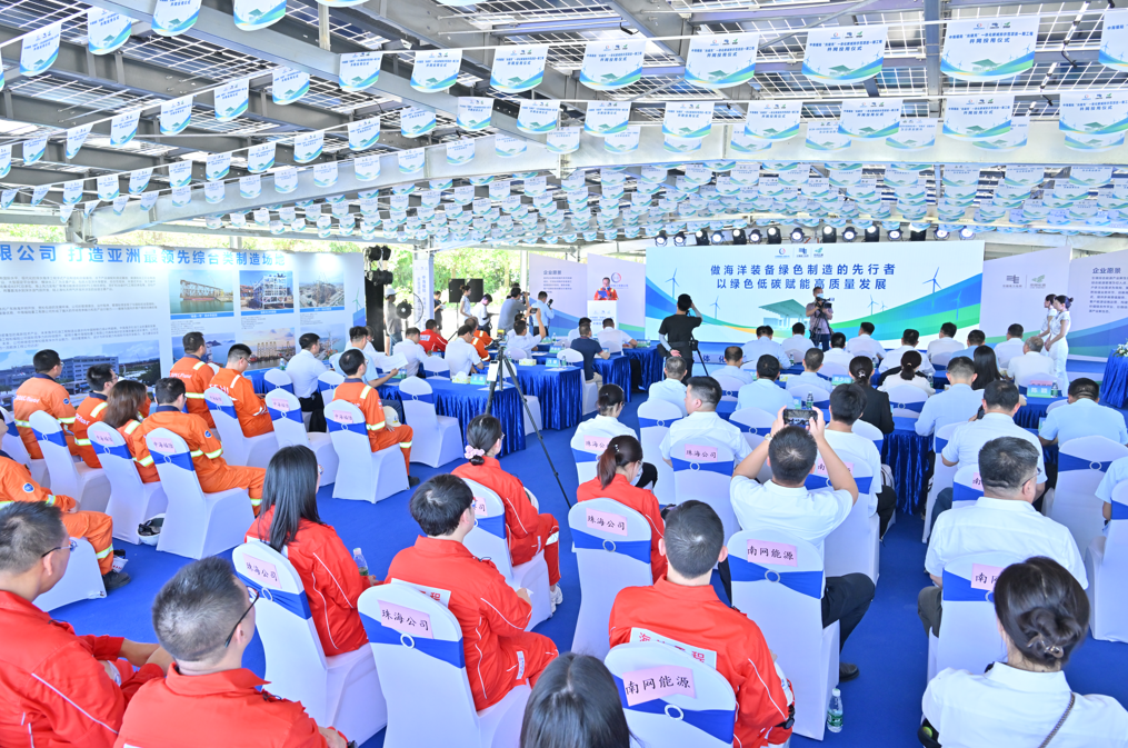 作为“海基一号”深水导管架等大国重器的“摇篮”,中海福陆珠海场地致力在未来打造海工装备制造业首个“零碳”工厂。据介绍,未来中海福陆将推动风力发电装置建设,形成“风电+光伏+储能+充电”的新能源供应体系,计划总装机容量达30MW,加速公司生产和生活用电的绿色化替代,年均发电量达4676万kwh,基本可满足公司生产和生活用电需求。