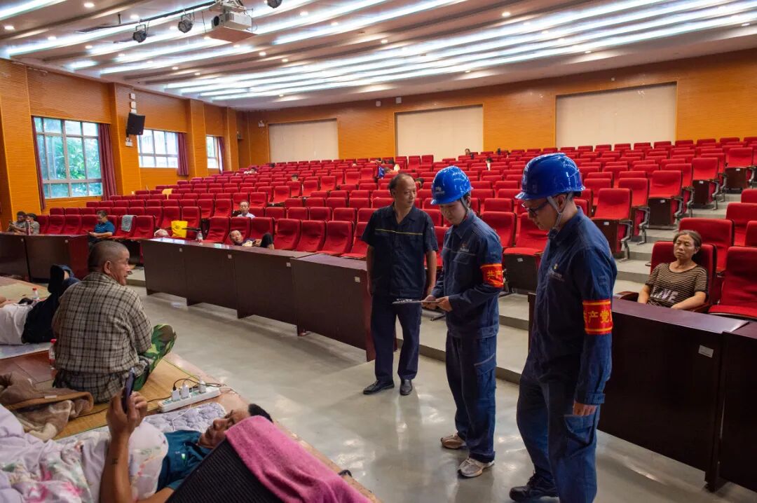 ▲9月1日下午,为确保庇护场所群众安心用电,珠海金湾供电局党员突击队前往珠海城市职业技术学院防台风庇护场所,向相关负责人详细了解用电情况,并对人员聚集公共区域的低压总开关、漏电保护及限流开关设备进行负荷测试及安全隐患排查。
