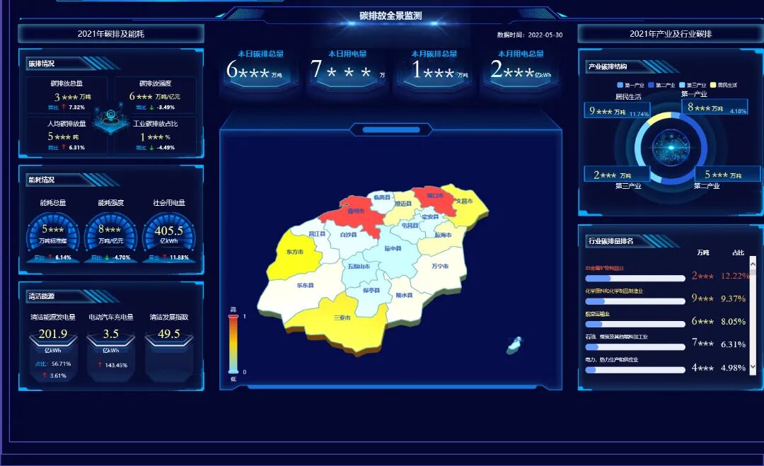 ▲海南应对气候变化智慧管理平台可快速监测、预警、发布全省碳排放情况,实现温室气体排放“有迹可循”。(南方电网海南电网公司供图)