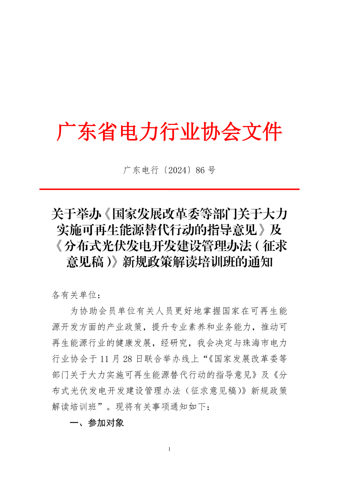 关于举办可再生能源及分布式光伏新规政策解读培训班的通知