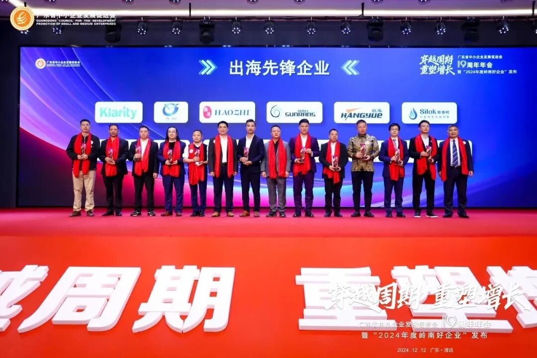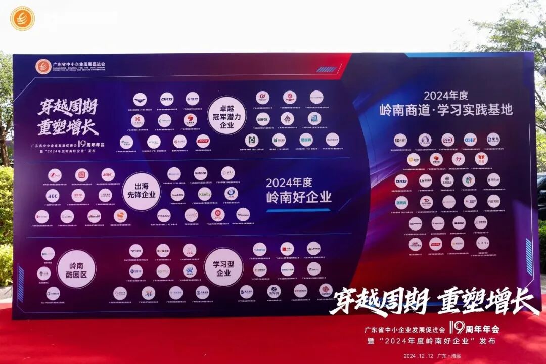 2024年12月12日,“穿越周期 重塑增长”广东省中小企业发展促进会19周年年会暨“2024年度岭南好企业”发布会,在清远成功举办。航粤智能电气股份有限公司作为副会长单位参会,并荣获“2024年度岭南好企业-出海先锋企业”荣誉,副总裁蒙相彬代表公司出席了本次盛会。